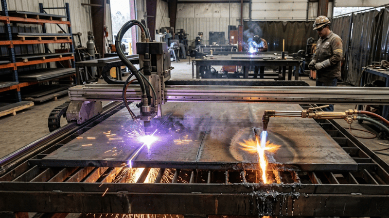 For thick carbon steel plate, oxy-fuel is often the better choice. For thin sheet metal, plasma is usually faster, cleaner, and easier to integrate into fabrication work.
